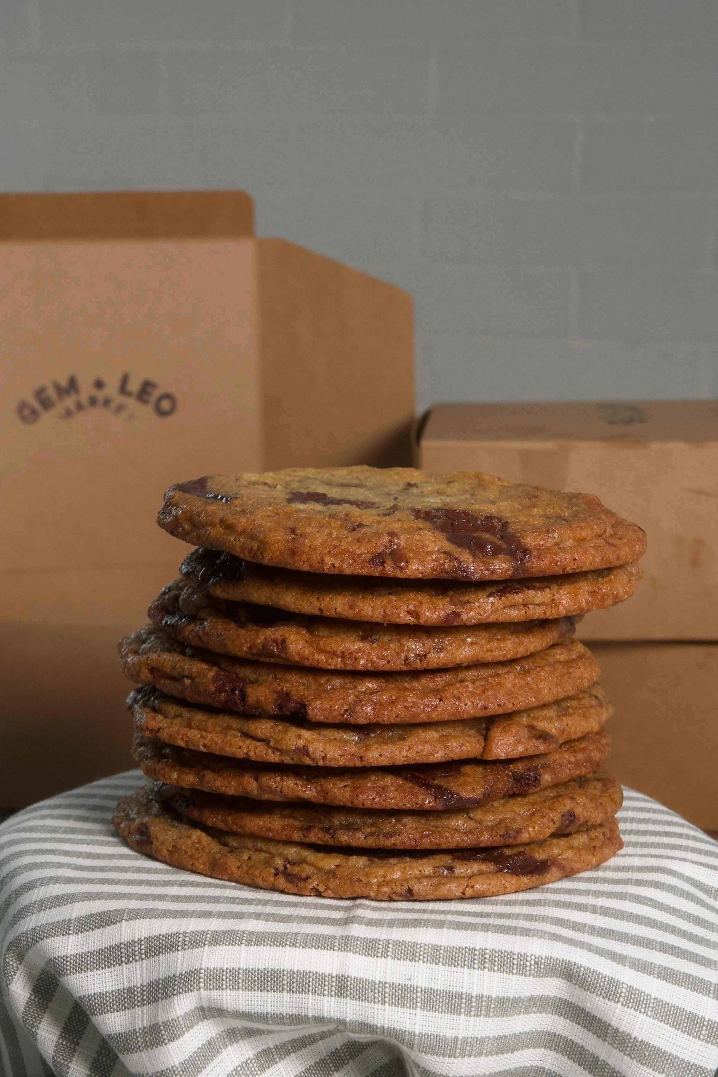 Our signature Chocolate Chunk Cookies are baked in small batches with dark and semi-sweet chocolate. Crisp edges, soft centers, and the perfect balance of rich, buttery flavor.